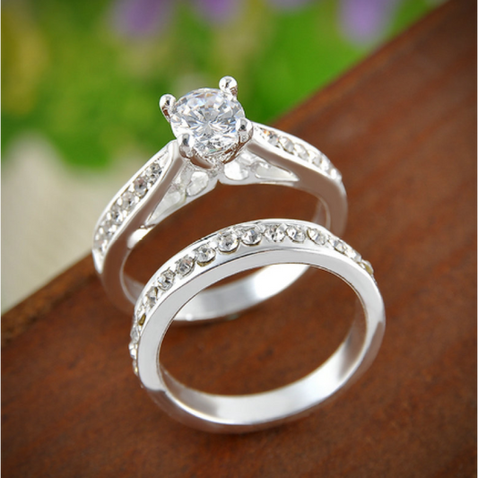 Jaily 3PC Wedding Ring Set | White Gold 18k