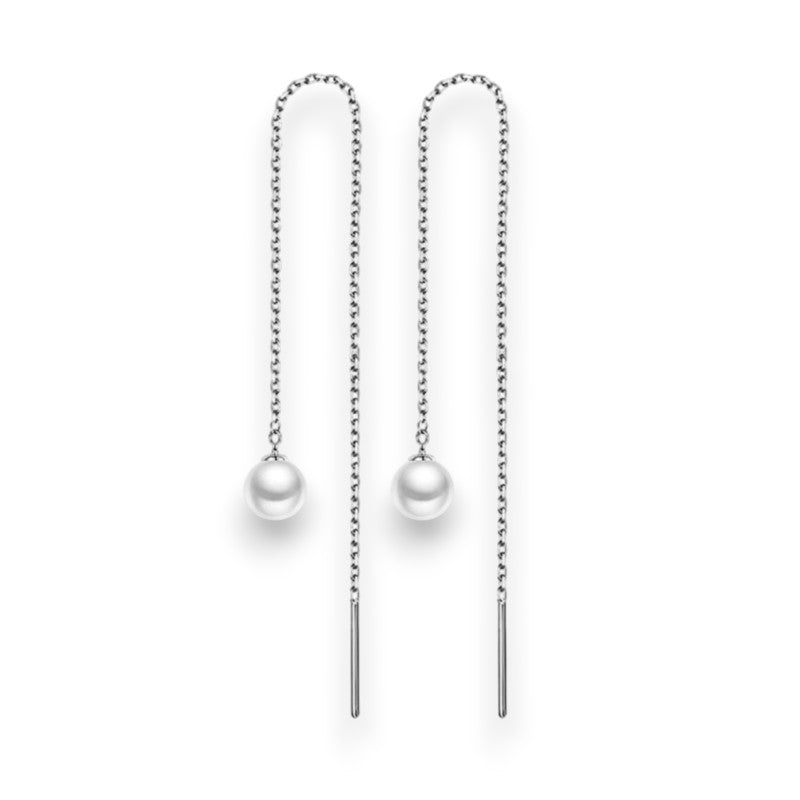 This elegant set of earrings features delicate pearls at the ends, adding a touch of timeless sophistication. Lightweight and versatile, they’re perfect for everyday wear or special occasions. Whether worn alone or paired with your favorite pieces, they effortlessly enhance your style with a subtle, classic charm.