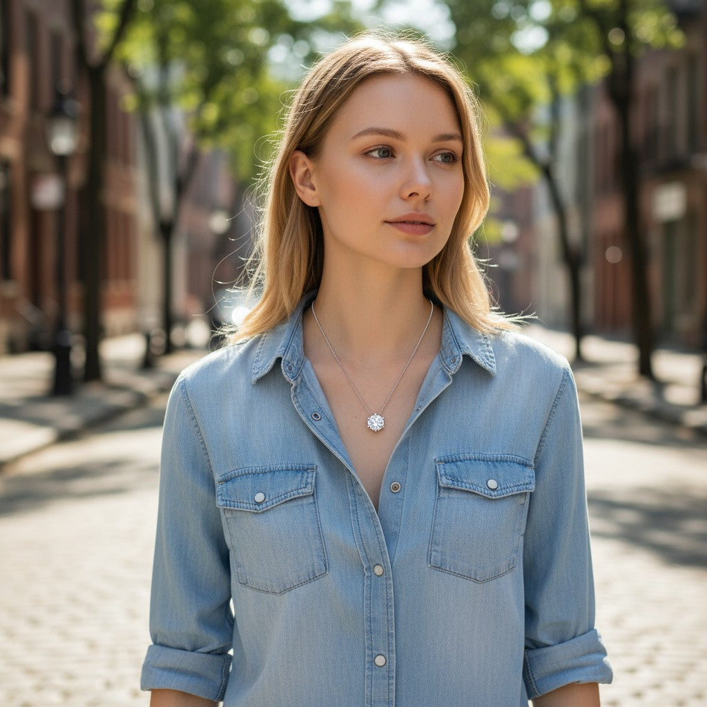 This stunning diamond necklace showcases a delicate chain —elegant, timeless, and ideal for any occasion. Whether worn solo or layered with your favorite pieces, it’s the kind of jewelry that effortlessly enhances your style while adding a touch of brilliance to every moment.